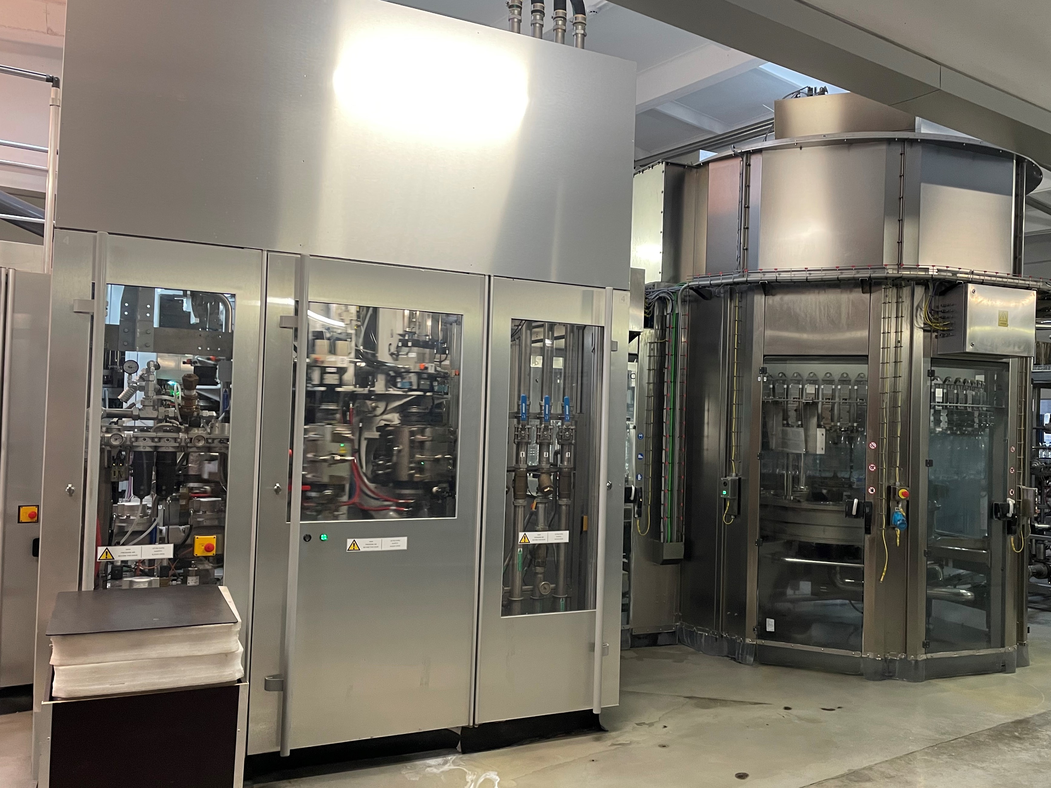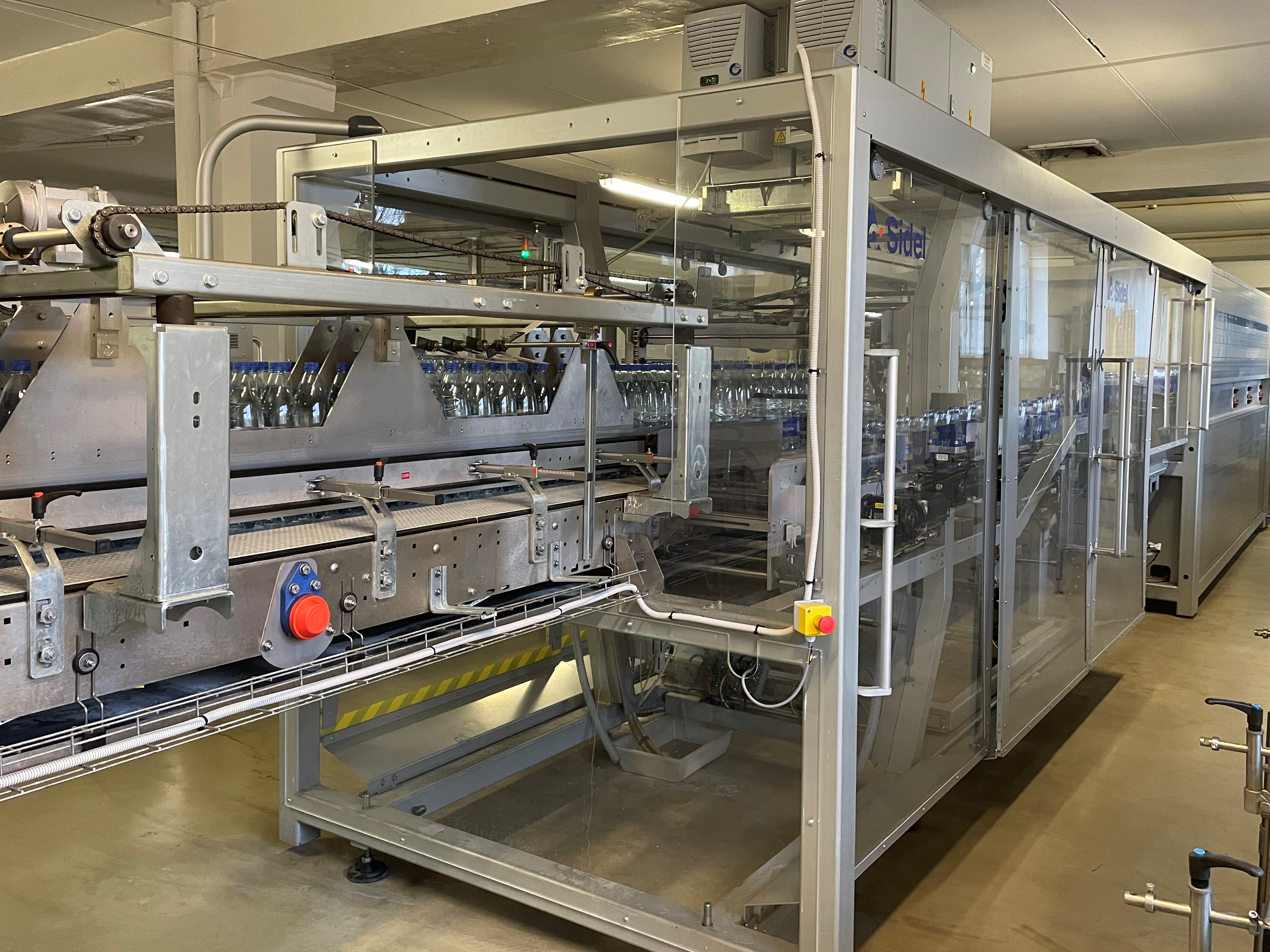 SIDEL CSD PET LINE 15 000 bph. Years 2015. Cork neck is PCO 1881 + Sport Cap.