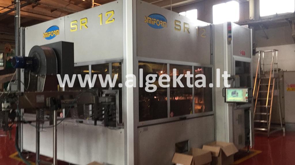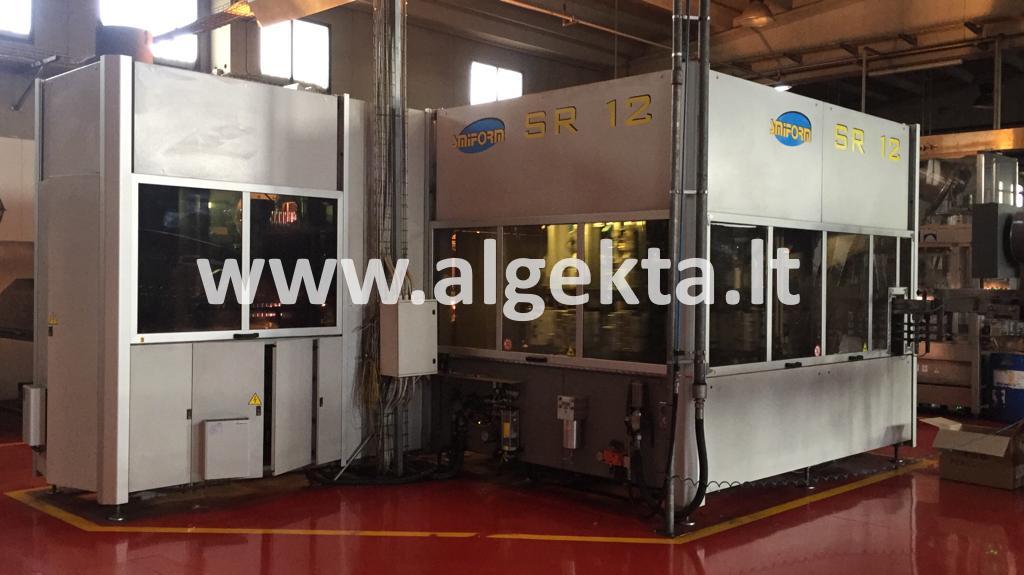 This BLOW MOLDER is made by SMI SMIFORM SR12 in 2010 and its capacity nominal capacity 20 000 bph. Total operating hours 56 472 only! All drives are with PLC controlled servo motors. The machine is easily adjusted to various bottles and formats. Includes preform tipper, and conveyor.
