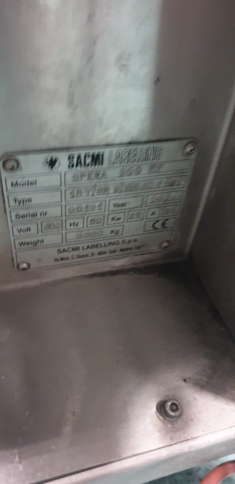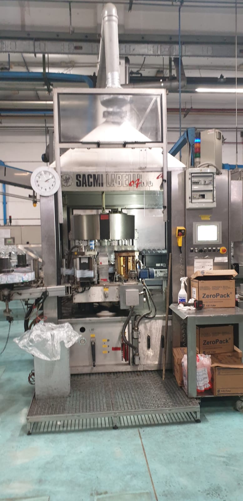 SACMI OPERA, machine for applying circular polypropylene labels for PET bottles.