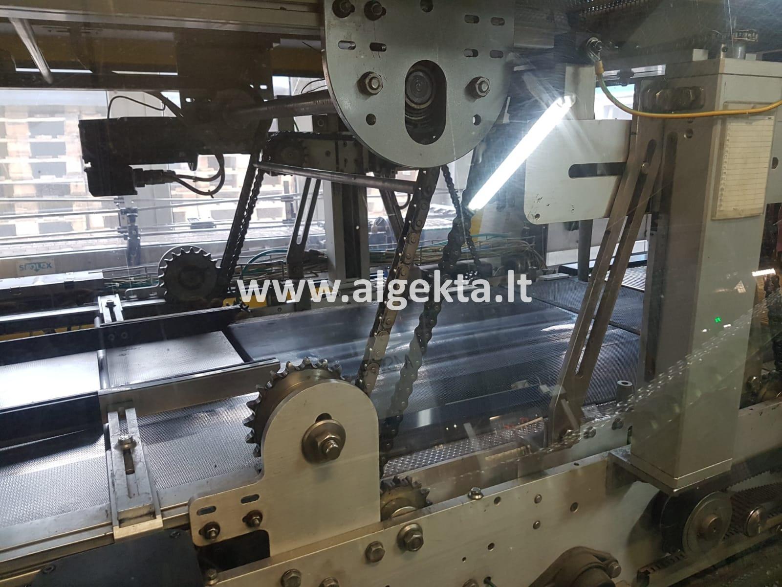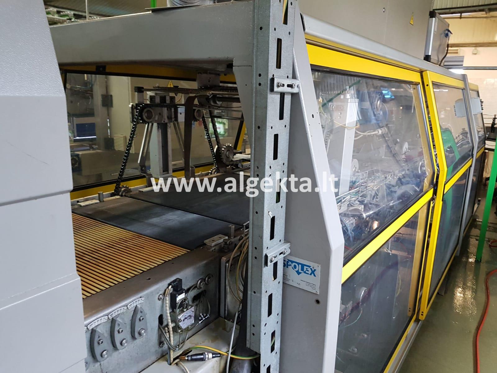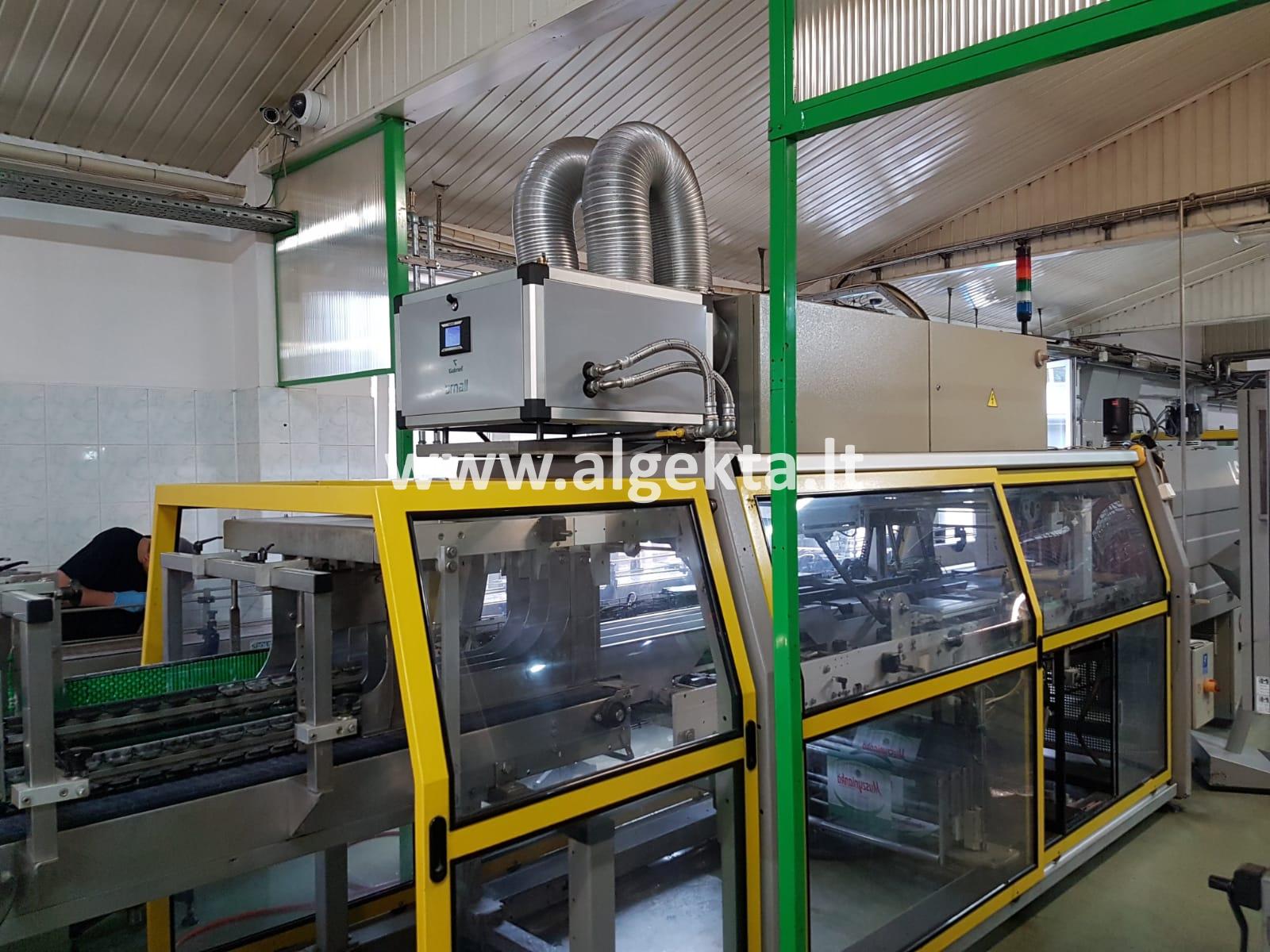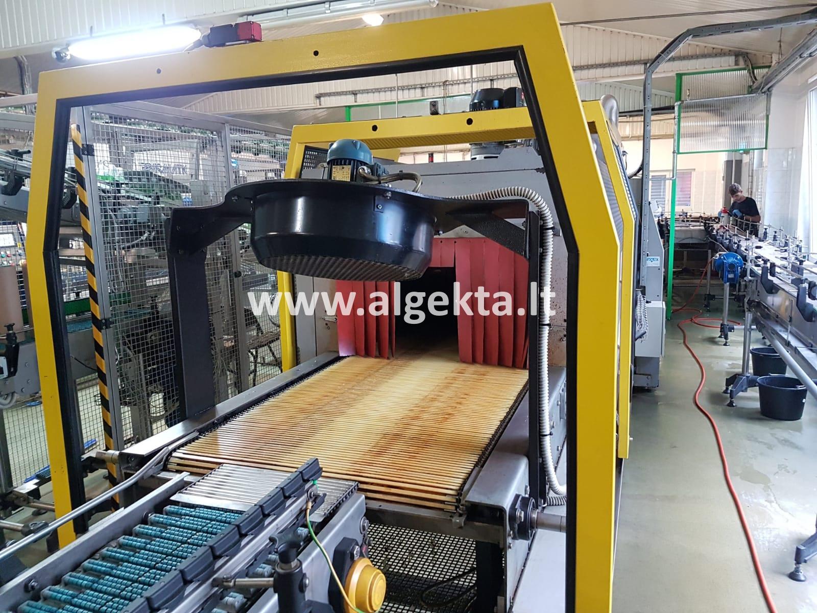 This packer is made by SMI in 2000 and it is packing 0.5-liter and 2.0-liter PET bottles, nominal capacity of the packer is 16 000 bph. Total operating hours 62 000 only! All drives are with PLC controlled servo motors and thus the machine is easily adjusted to various bottles and formats.