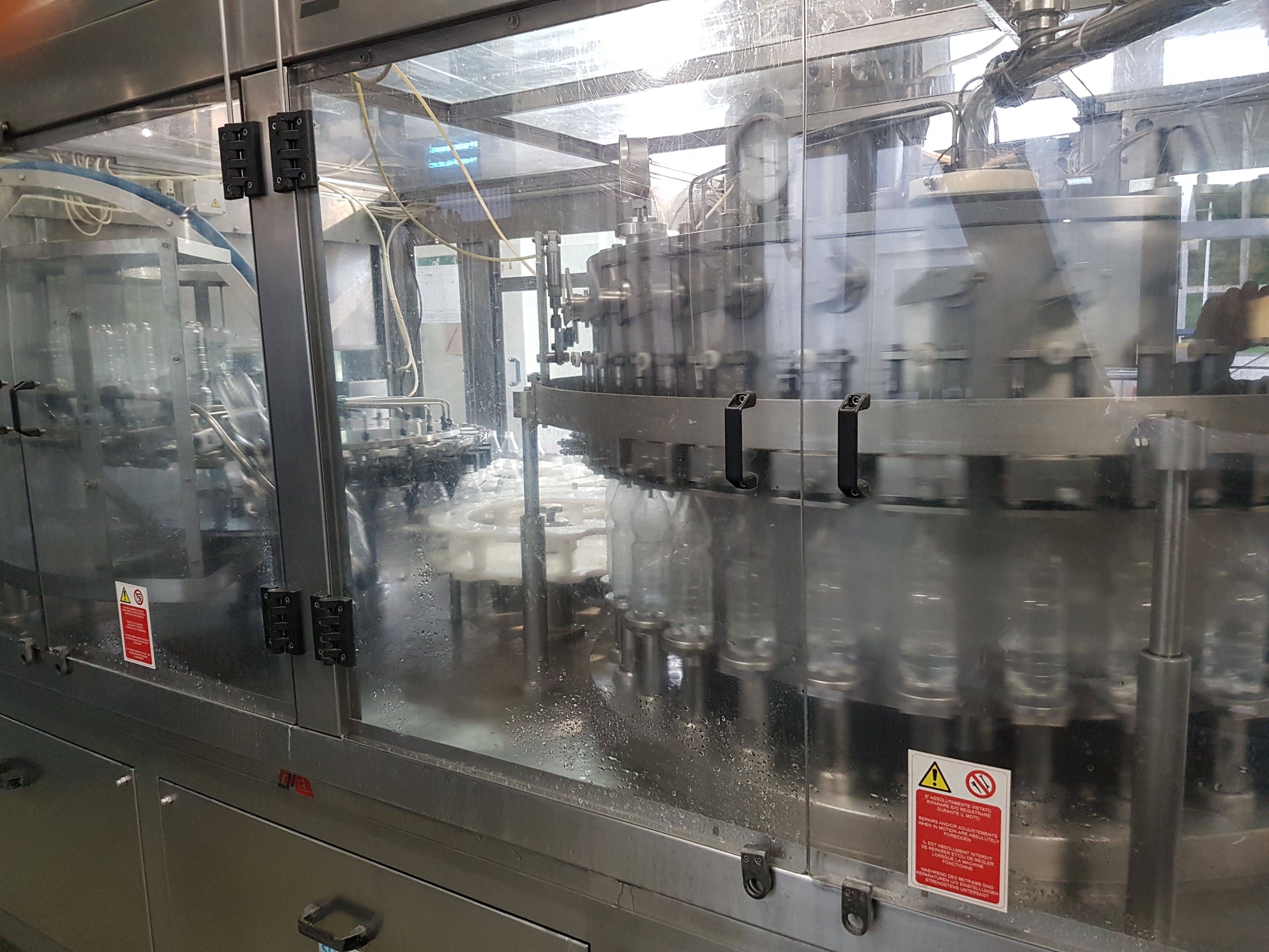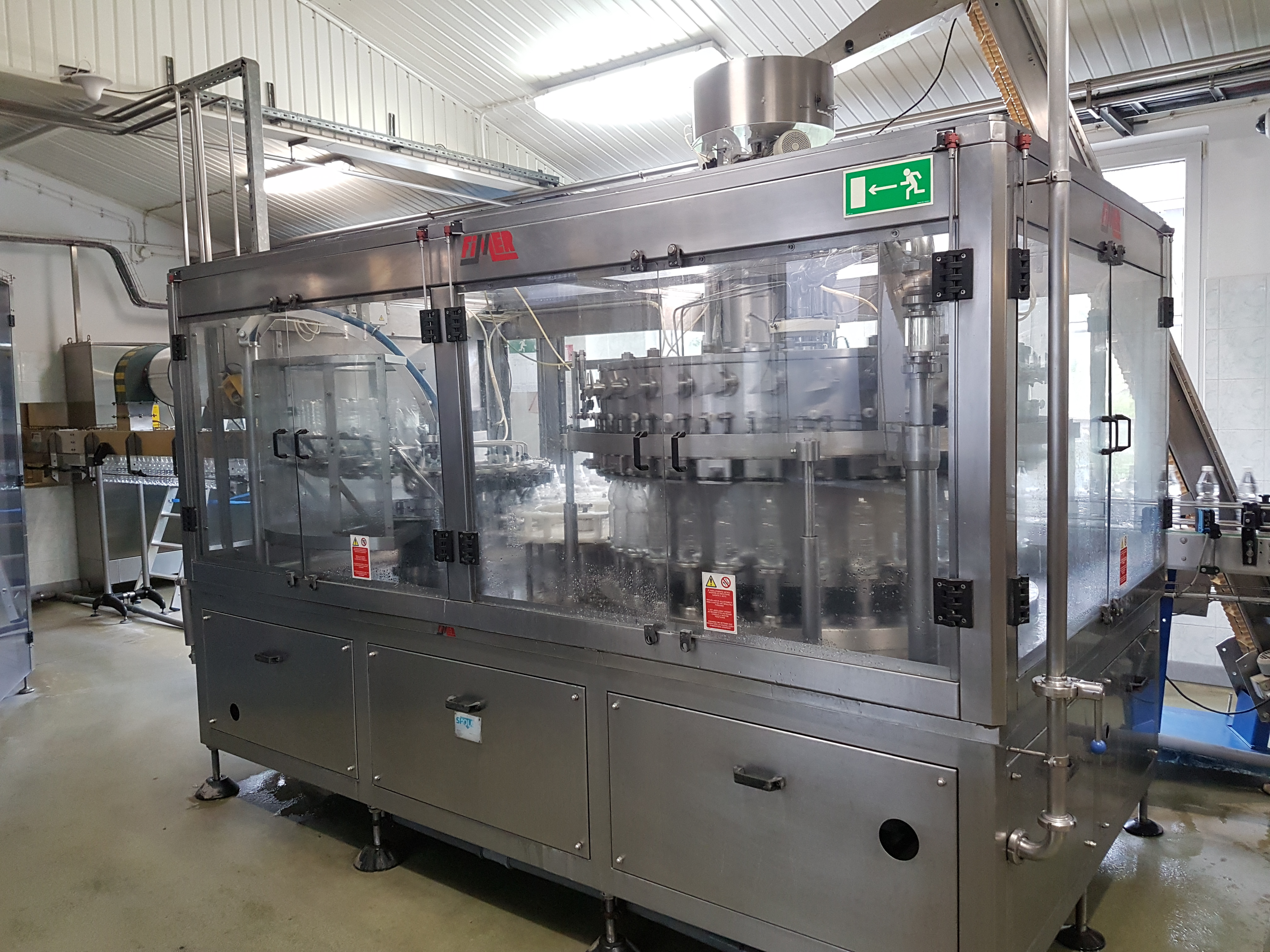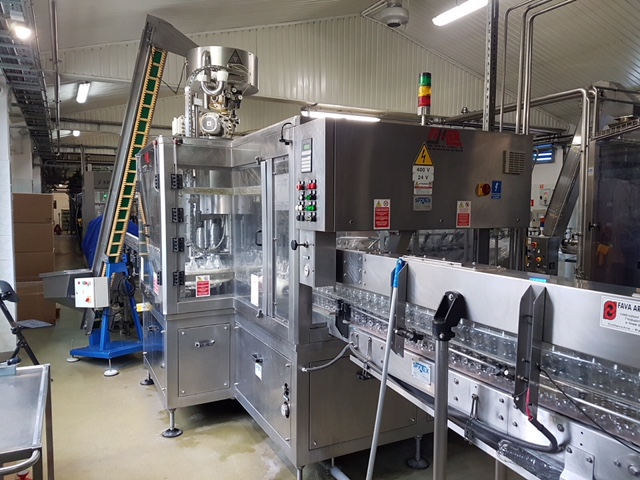This isobaric Triblock from the manufacturer FIMER (Italy), manufactured in 2002, is designed for filling carbonated lemonades into PET bottles with a volume of 0.5 to 1.5 liters with a low cork stopper 1881.